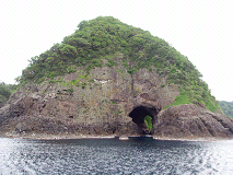 淀の洞門高さ15m、奥行き30~40mの洞門。海食洞(かいしょくどう)と呼ばれ、波が岩山を少しずつ砕き続けた結果、地質の弱い部分が崩れてできた穴です。但馬海岸一帯でよく見られ、この”淀の洞門”もその1つ。